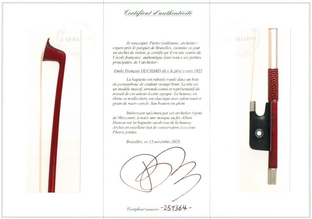Violin bow Emile François Ouchard dit « le père » vers 1925. 56.5 g.